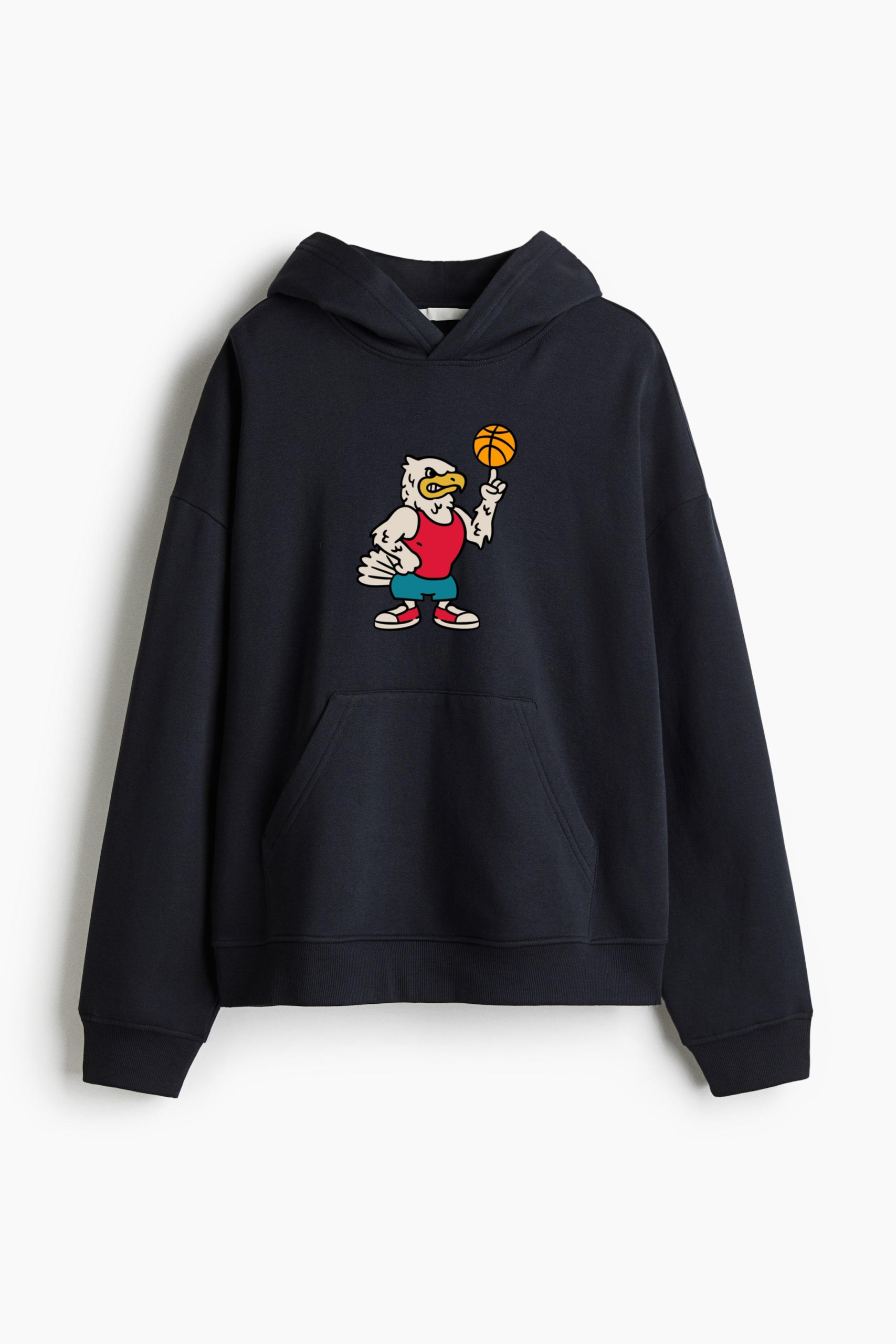 • Eagle Mascot Holding A Basketball Ball Loose-Fit Printed Hoodie
