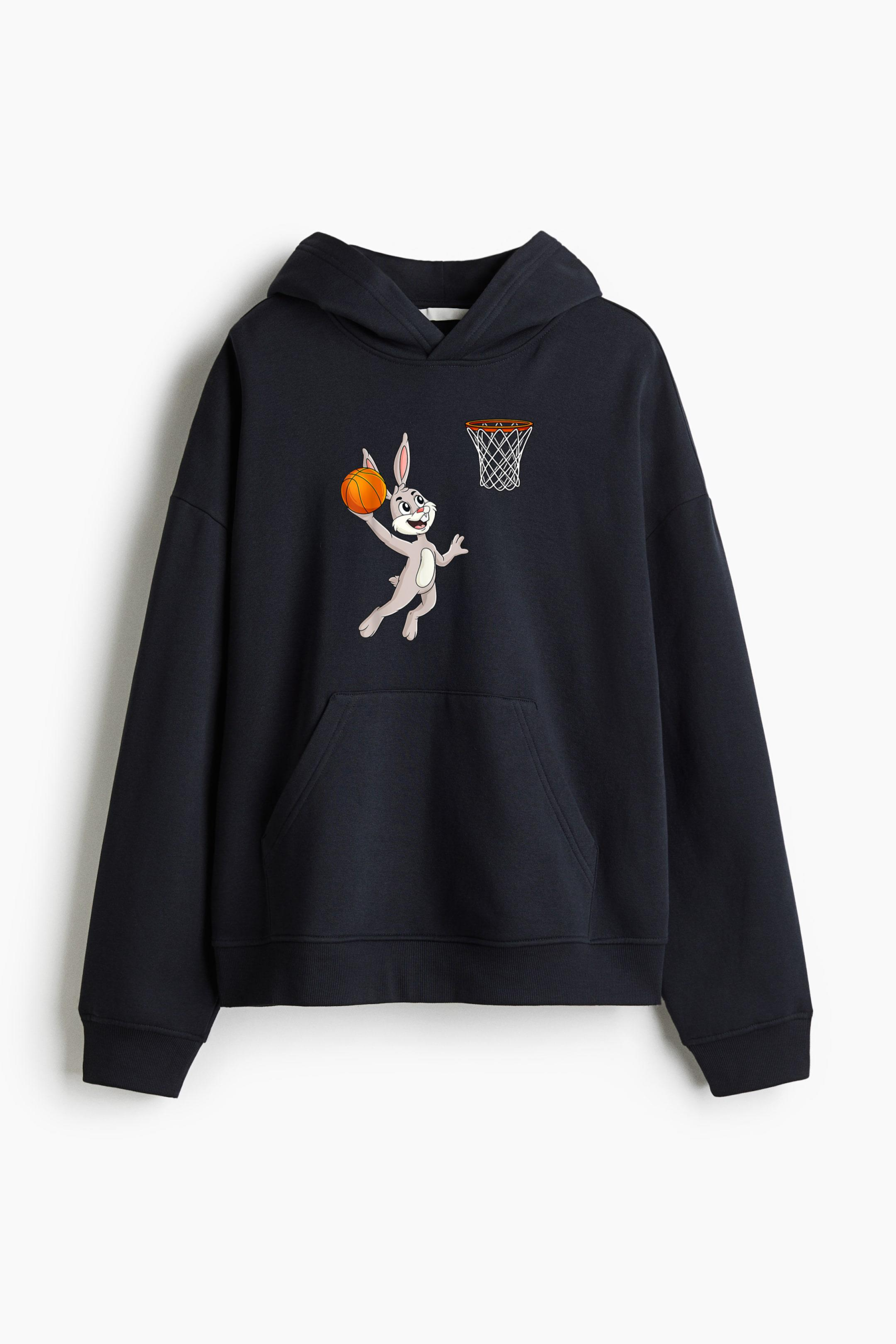 • Easter Day Rabbit A Dunking Basketball Loose-Fit Printed Hoodie