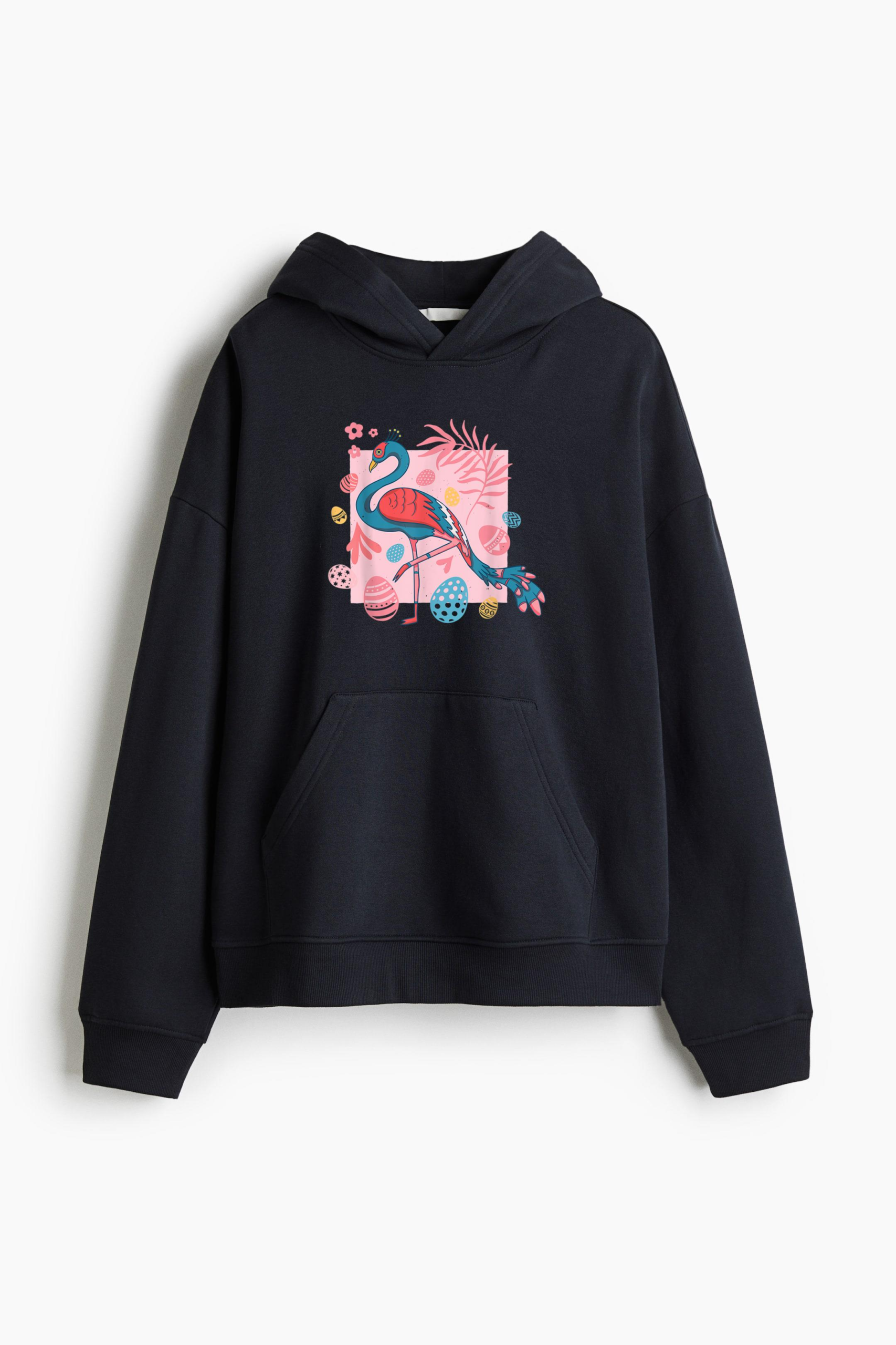 • Easter Flamingo With Easter Basket Loose-Fit Printed Hoodie
