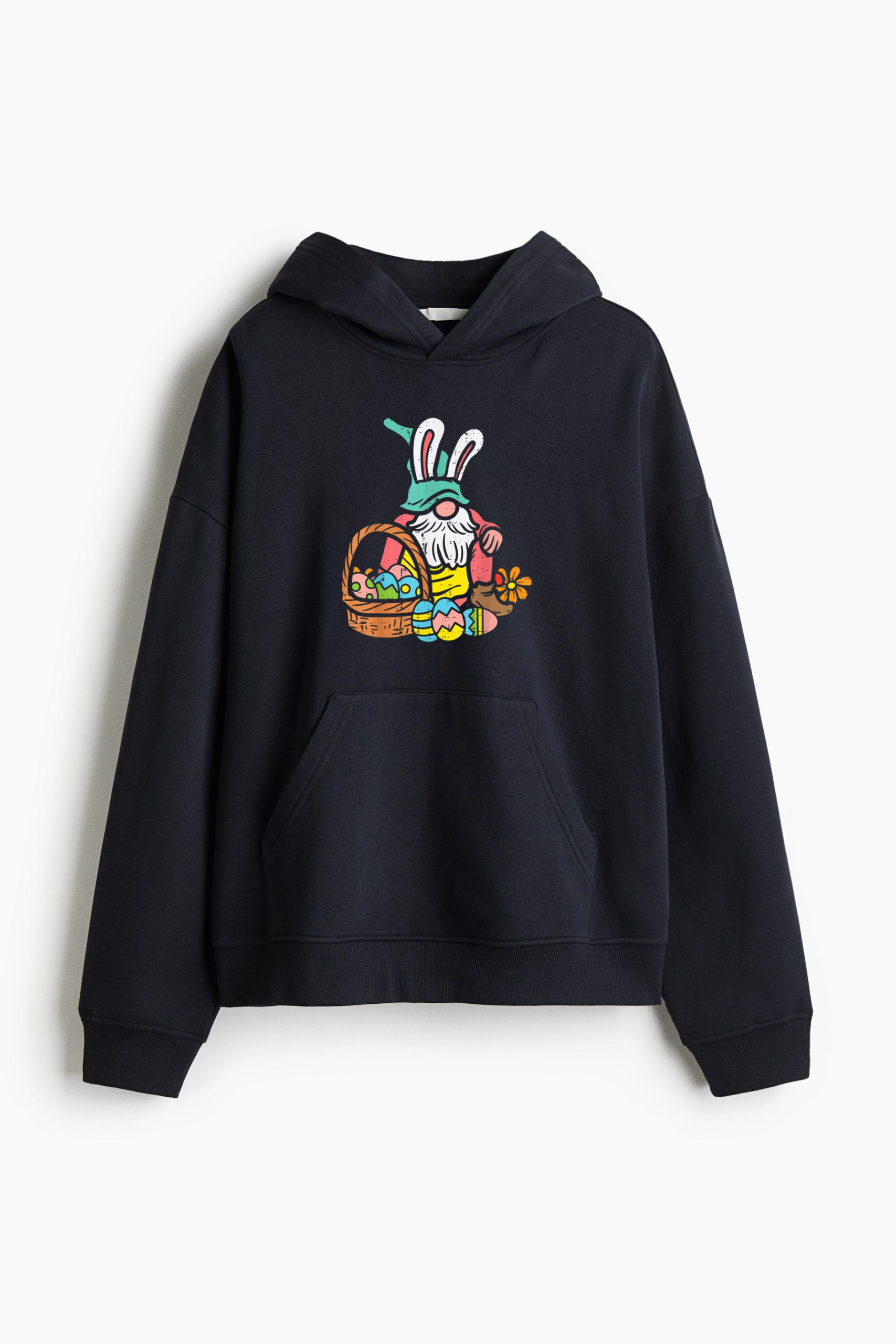 • Gnome Bunny Easter Eggs Basket Easter Day Loose-Fit Printed Hoodie
