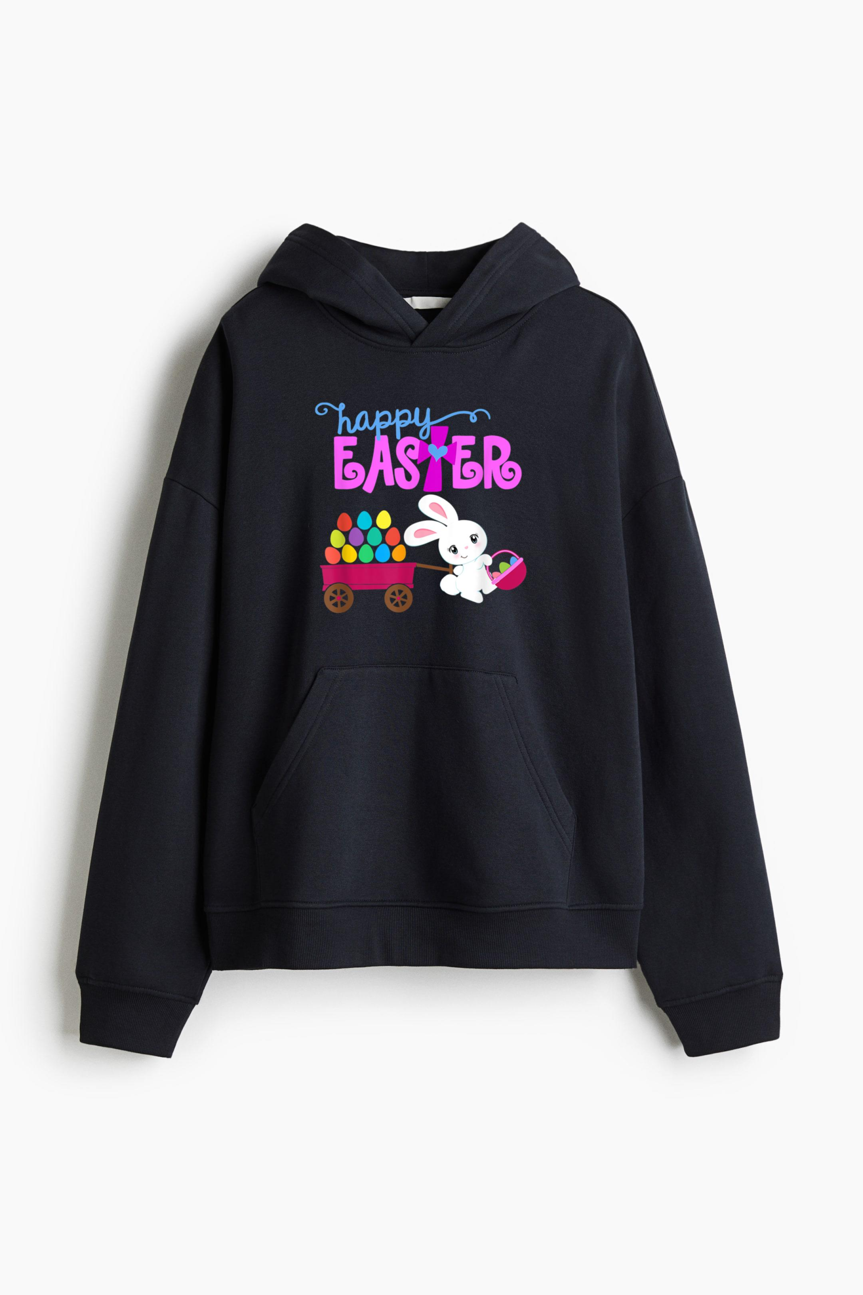 HAPPY EASTER Bunny Egg Hunt Basket Christian Girls Toddlers Loose-Fit Printed Hoodie