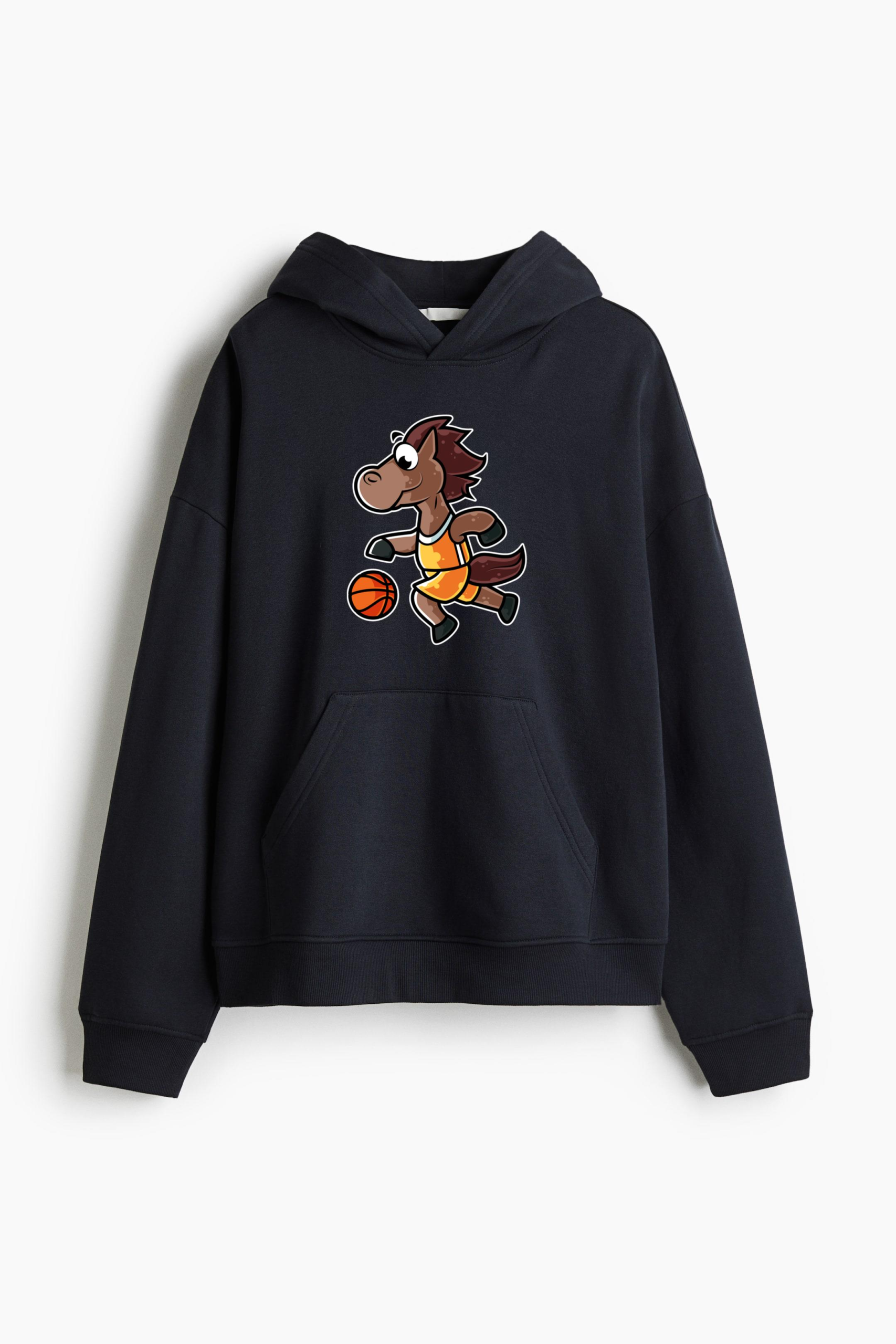 Horse Basketball Loose-Fit Printed Hoodie