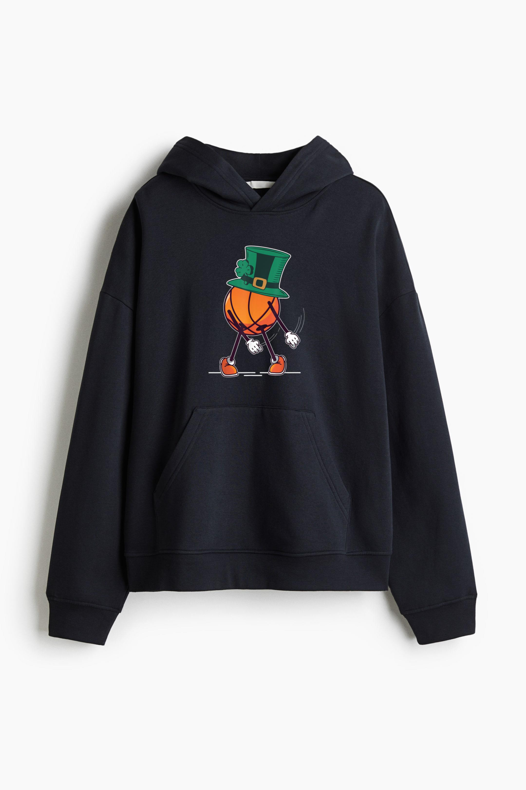 • Irish St Patricks Day Hat Basketball Loose-Fit Printed Hoodie