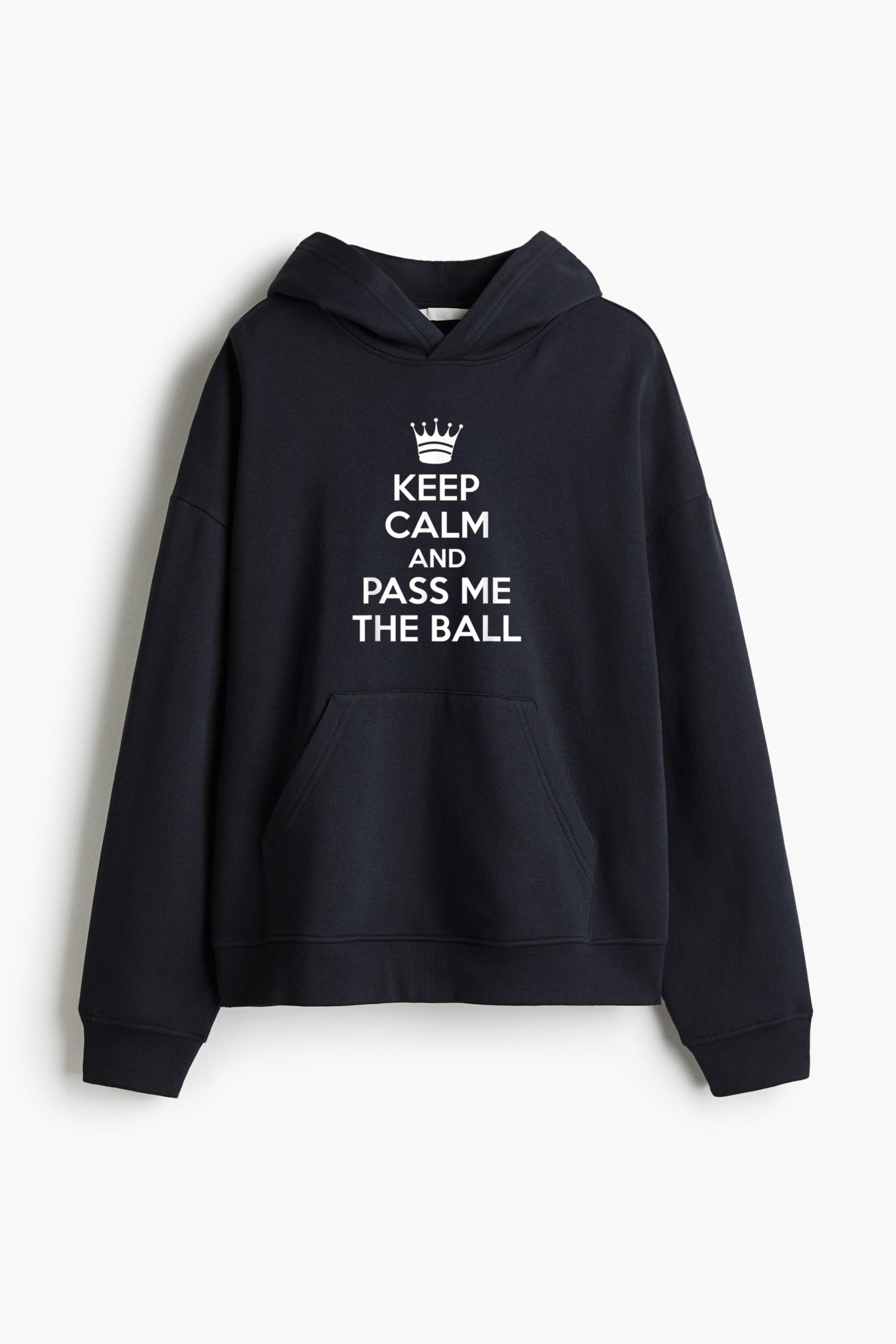 • Keep Calm Pass Me The Ball Basketball Loose-Fit Printed Hoodie
