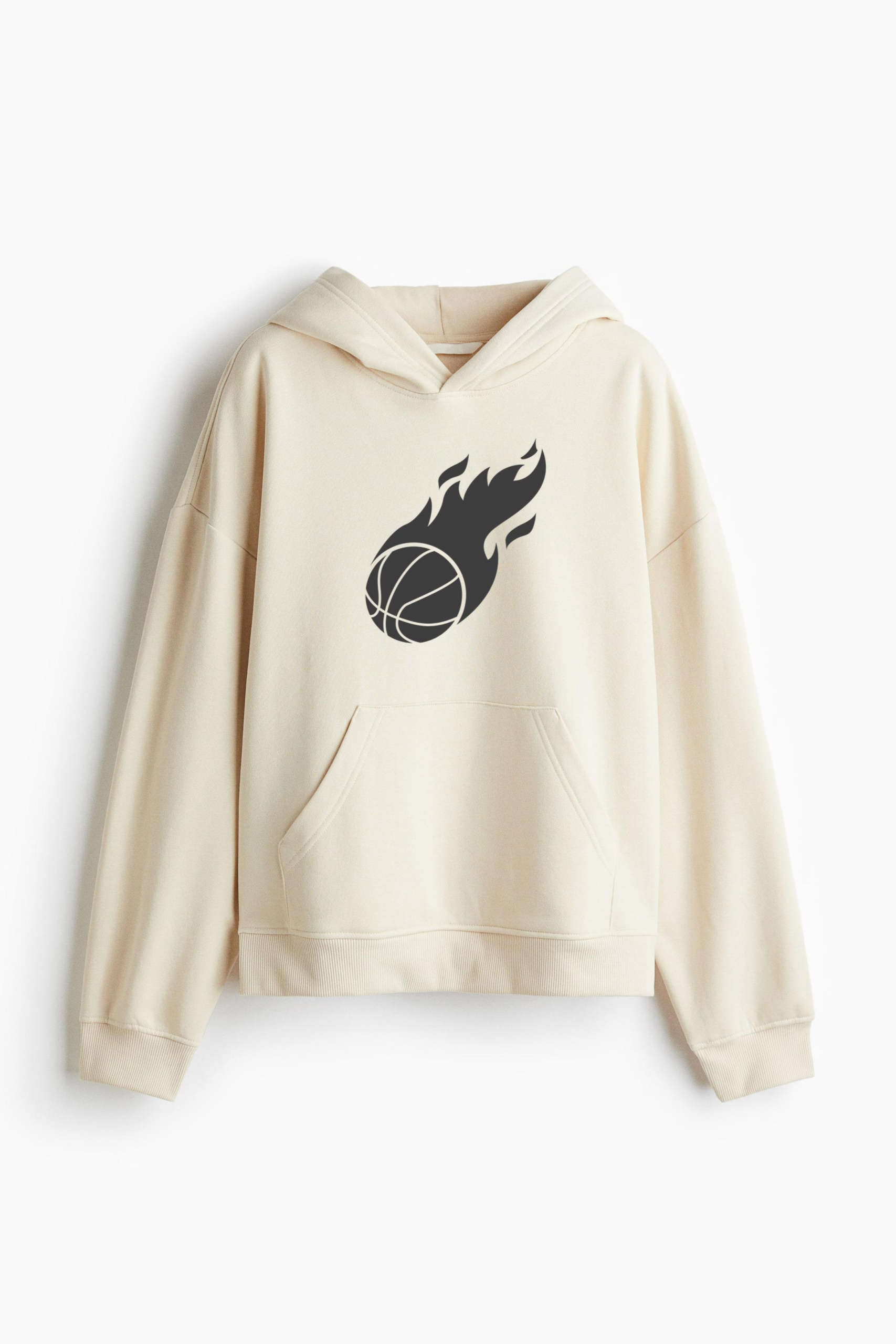 Flaming Basketball Ball Cut Out Loose-Fit Printed Hoodie Loose-Fit Printed Hoodie – Soft Cotton-Blend Hoodie with Printed Design and Relaxed Silhouette
